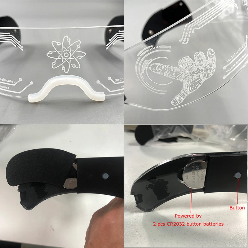 Nome do produto: Óculos LED Como usar Para um tipo Material: Plástico PC Quando você abre os óculos, os óculos LED mudam automaticamente a cor. Para B-H,I, tipo K Alta qualidade material: Acrílico, transmitância claro mais forteÓculos LED é dois lados controlados. Pressione o botão de mudança de cor do lado esquerdo, o LEDMudança entre abaixo 12 cores. Pressione o botão de mudança de cor do lado direito, o LED mudará entre 12 abaixoCores. Abaixo estão as 12 cores.1. Flash claro branco;2. Sete cores mudam por sua vez;3. O branco é sempre brilhante;4. O vermelho, o verde, e o azul mudam gradualmente por sua vez;5.Ice azul é sempre brilhante;6.Green é sempre brilhante;7. O vermelho é sempre brilhante;8. O azul é sempre brilhante;9. O pêssego é sempre brilhante;10. Amarelo é sempre brilhante;11. Vermelho, verde e azul cintilação intvolta.12. Desligue.Você pode definir cores diferentes nos lados esquerdo e direito, a fim de fazer 121 combinações de cores diferentes.